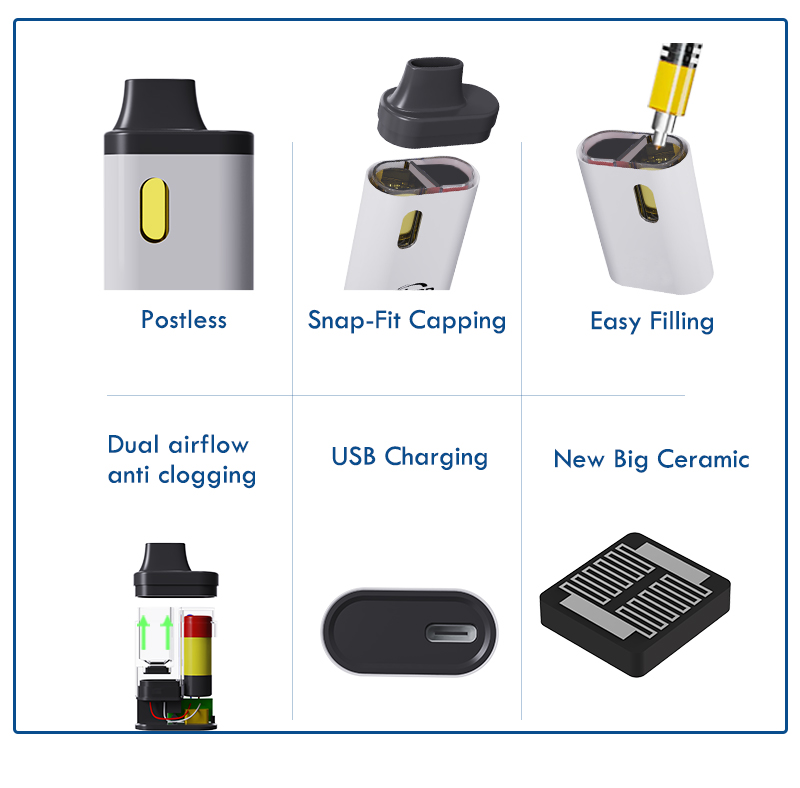 কাস্টম ডেল্টা 8 ডেল্টা 9 টিএইচসি ডিসপোজেবল– খাঁটি স্বাদ, স্মার্ট ডিজাইন। বিশেষভাবে পাতলা এবং ঘন গাঁজা উভয় তেলগুলির জন্য নির্মিত, এই মিনি বক্স-স্টাইলের ভ্যাপ ডিভাইসে একটি পোস্টলেস ডিজাইন এবং বড় ফ্ল্যাট ফিল্ম সিরামিক কয়েল বৈশিষ্ট্যযুক্ত, তুলনামূলক স্বাদে বিশুদ্ধতা এবং টেরপিন সংরক্ষণ সরবরাহ করে। মসৃণ, নিম্ন-তাপমাত্রা গরম করার সাথে, এটি লাইভ রজন, টিএইচসিএ, ডিস্টিলেট, রোজিন এবং মিশ্রণ তেলের মতো প্রিমিয়াম তেলগুলির সম্পূর্ণ স্বাদ ক্যাপচার করে। কমপ্যাক্ট এখনও শক্তিশালী, ডিভাইসটি কাস্টম অয়েল উইন্ডোজ এবং পূর্ণ-পৃষ্ঠের ব্র্যান্ডিং সমর্থন করে, এটি ফরোয়ার্ড-চিন্তাভাবনা গাঁজা ব্র্যান্ডগুলির জন্য উপযুক্ত ফিট করে তোলে। ধারাবাহিক পারফরম্যান্স। ক্লিন বাষ্প। সাহসী পরিচয়।